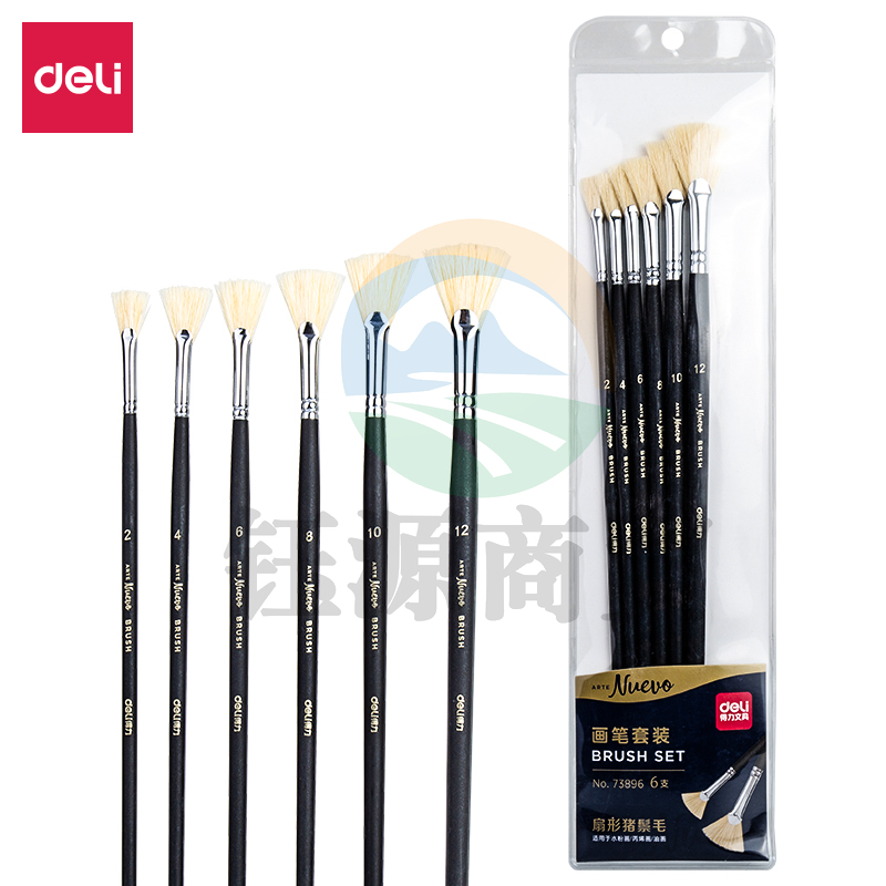 得力73896_扇形猪鬃毛画笔6支套装(黑色)(6支/袋)