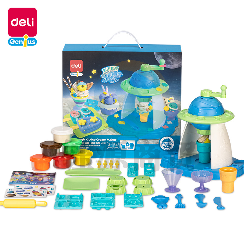得力YC121_彩泥套装玩具-星球冰淇淋机(混)(盒)