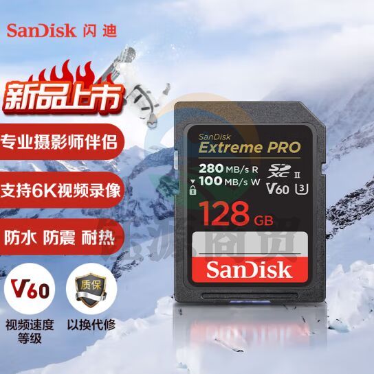 闪迪(SanDisk)128GB SD存储卡U3 C10 6K数码相机内存卡读速280MB/s 写速100MB/s 支持V60高清视频 畅快连拍