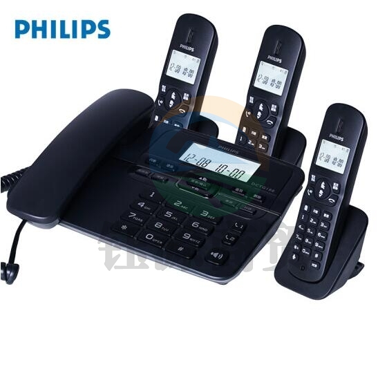 飞利浦DCTG188数字无绳电话机办公家用座机电话子母机免提通话/一键拨号/DCTG188一拖三(黑色)