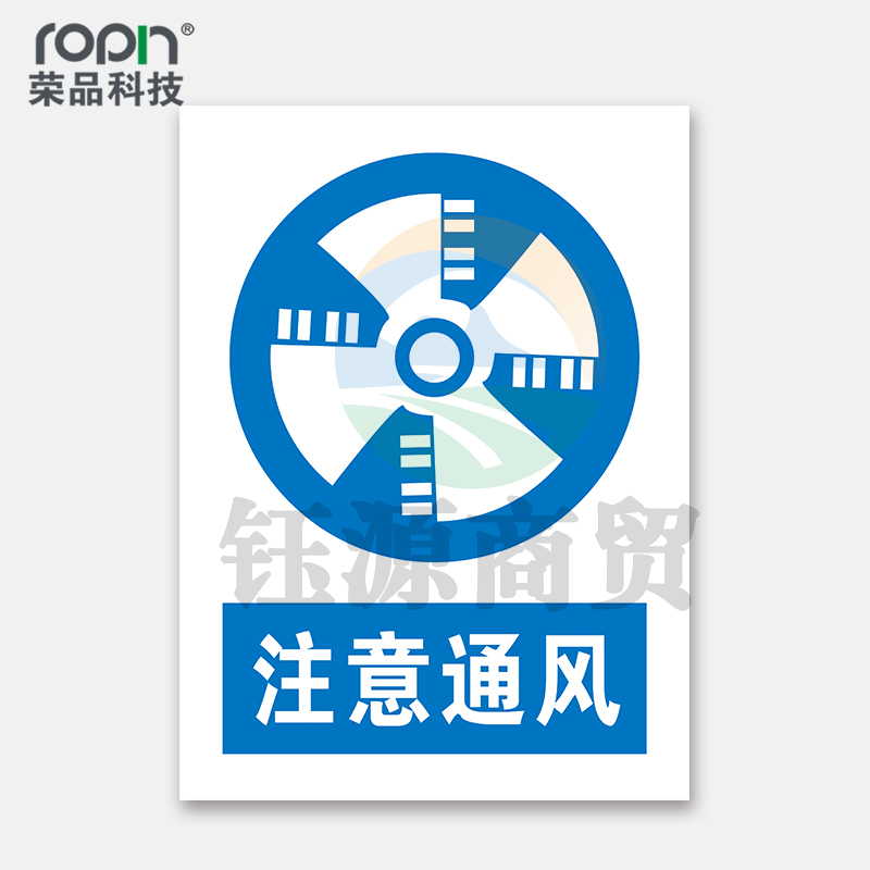 荣品 PVC国标安全警示标识牌验厂安检检查警示牌警告提示牌温馨提示标贴定制订做 注意通风 300×390mm
