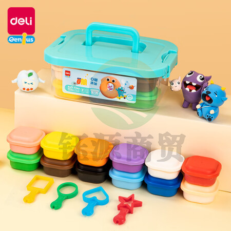得力(deli)12色无硼粘土 超轻黏土0硼彩泥橡皮泥创意玩具手工DIY 工具箱装YC114-12