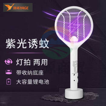 雅格 电蚊拍灭蚊灯带底座紫光灭蚊USB充电式家用灭蚊拍驱蚊灭蚊器D041