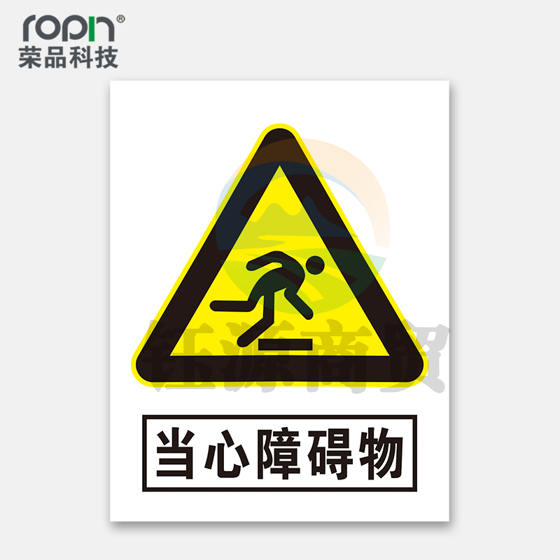 荣品 PVC当心安全国标警示标识牌验厂安检检查警示牌温馨提示标贴自带背胶订做定制 当心障碍物 220×300mm