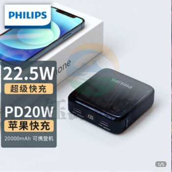 飞利浦充电宝10000毫安大容量小巧便携华为22.5W超级快充移动电源黑灰渐变22.5W超级快充 DLP2114U 10000mAh 5V3A