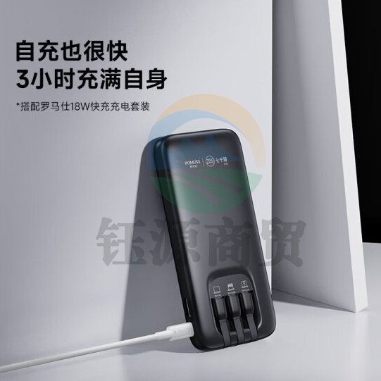 罗马仕充电宝自带线三线10000毫安时22.5W充电宝(npx)