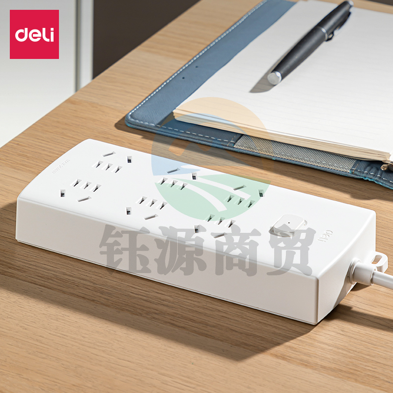 得力(deli)莹白系列延长线插座 接线板 线芯加粗 总控开关插座 办公家用用品 【6组合孔长10米】LX115(10)