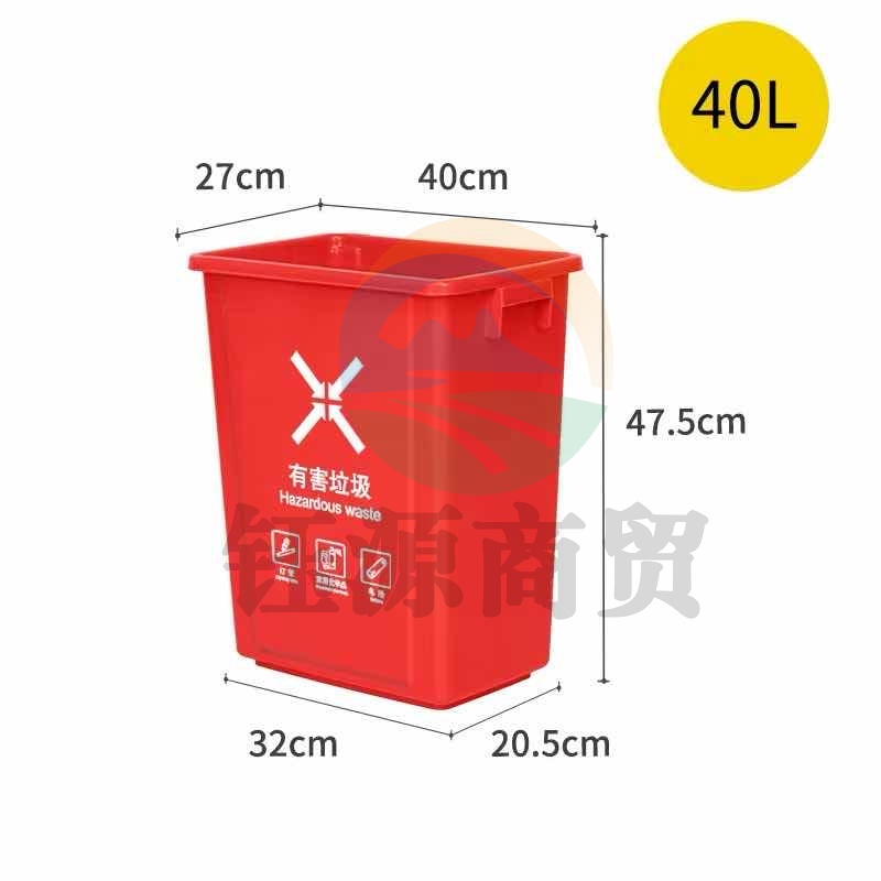敏胤(MINYIN) MYL-7740B-4 40L无盖有害垃圾标识分类垃圾桶 (颜色:红色)单位:个