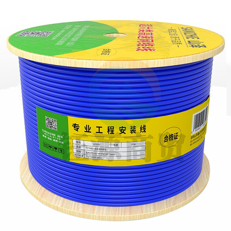 山泽(SAMZHE)超六类双屏蔽网线CAT6A类工程家装万兆网络宽带线抗干扰降衰减纯铜线蓝色305米LC6305