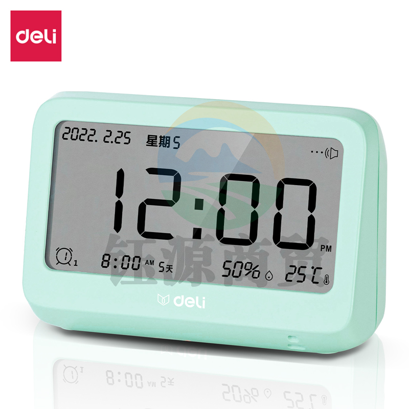 得力LE100-GN电子闹钟(绿色)(1台/盒 赠送7号电池*2)