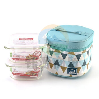 乐扣乐扣(LOCK&LOCK)LLG214S904 玻璃保鲜饭盒水果便当少女心餐盒小号微波炉500ML*2餐包午餐包 (蓝色餐包)
