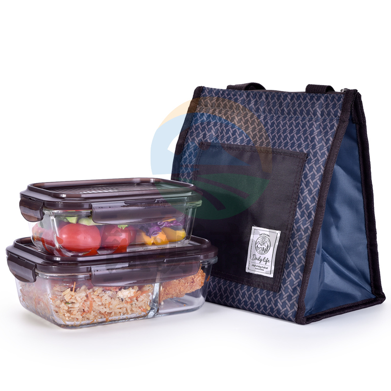 乐扣乐扣LLG991CS102 保鲜盒微波炉饭盒 高硼耐热玻璃分隔便当盒 两件套送便当包 610+930ml