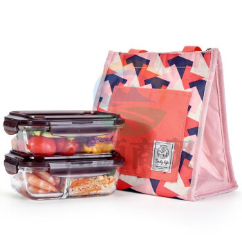 乐扣乐扣(LOCK&LOCK)LLG990S101 耐热玻璃分隔便当盒两件套耐高温可微波610ml+560ml