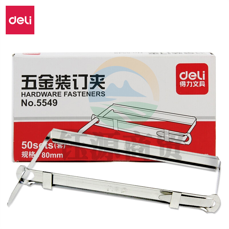 得力5549五金装订夹80MM(金属色)(50套/盒)