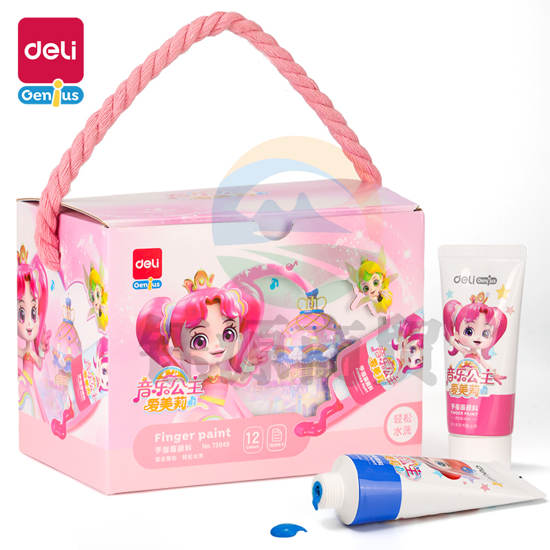 得力(deli)73949音乐公主爱美莉手指画颜料 12色儿童学生画画绘画涂鸦玩具美术用品色彩涂鸦