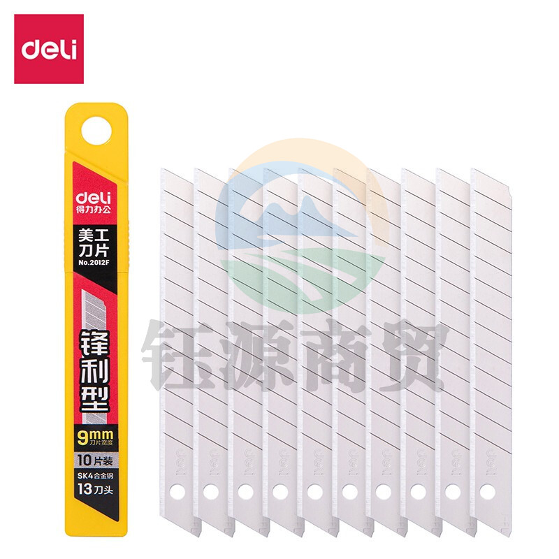 得力2012F小号(9mm)美工刀片(银色)(10片/盒)