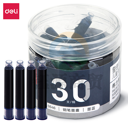 得力S646钢笔墨囊(墨蓝)(30支/桶)