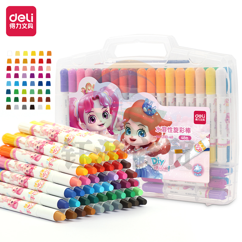 得力72110-48_PP盒装音乐公主水溶性旋彩棒(混)(48色/盒)