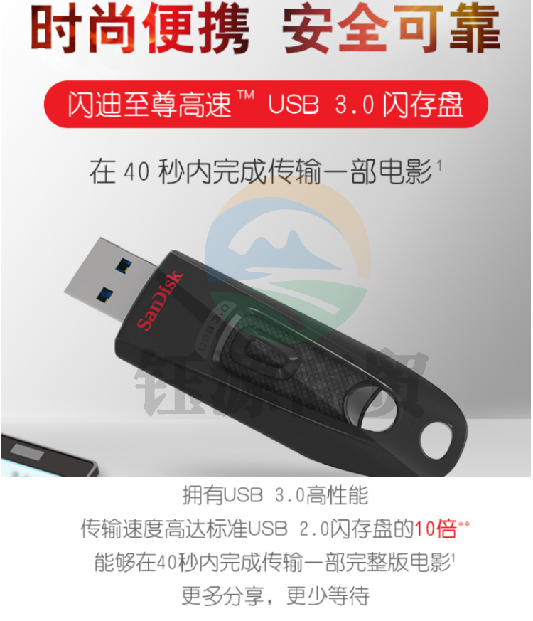 闪迪(SanDisk) 64GB USB3.0 U盘 CZ48至尊高速 黑色 读速100MB/s