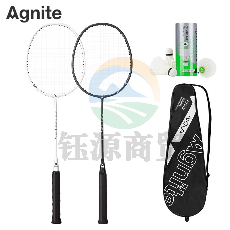 安格耐特F2149羽毛球拍铁铝一体(黑+白)(2支装,带3只球/付)