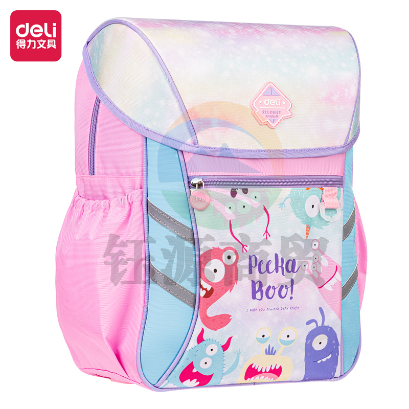 得力BB112磁吸盖头小恶魔款卡通2210系列粉学生书包(粉)(个)