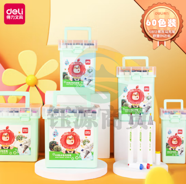 得力70812-60易洗水性三角杆马克笔(混)(60色/桶)