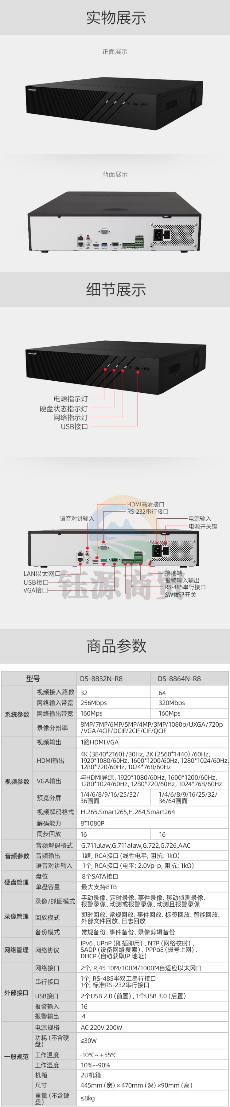 海康威视DS-8832N-R8网络硬盘录像机监控32路8盘位兼容8TNVR满配32个摄像头带5块4TB硬盘