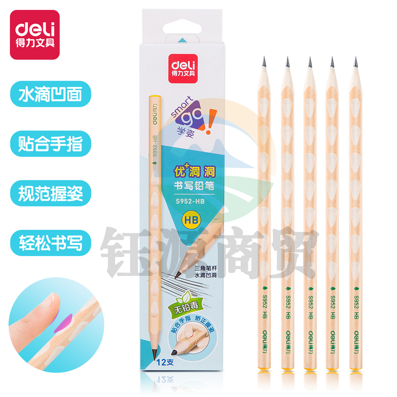 得力S952-HB_优+洞洞HB铅笔12支彩盒装(混)(12支/盒)
