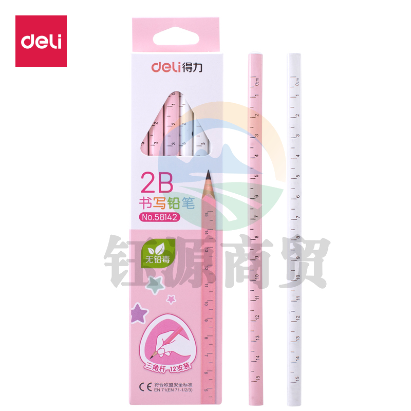 得力58142_三角杆2B书写铅笔12支(浅红)