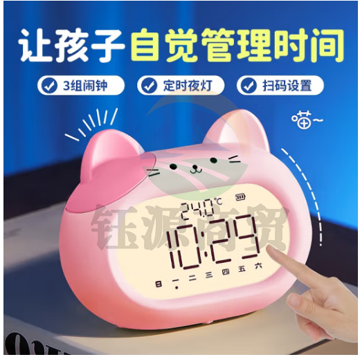 曲礼闹钟学生专用起床神器小女孩儿童智能闹铃声音大升学礼物电子桌面 猫咪闹钟+扫码设置+温度显示