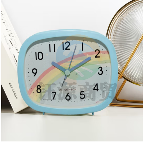 秘禧卡通闹钟学生专用起床神器桌面电子时钟儿童闹钟指针石英钟表 彩虹闹钟【蓝色】