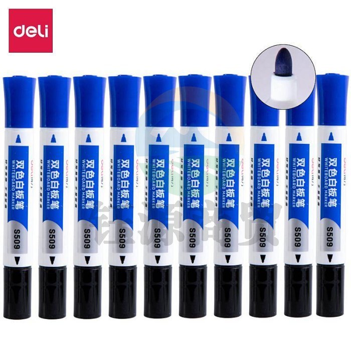 得力S509双头双色白板笔 黑蓝组合 (单位:支)黑蓝