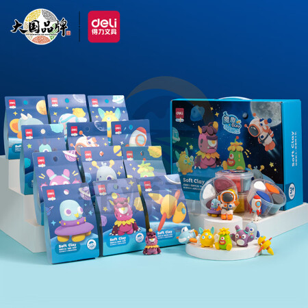 得力(deli) 主题粘土套装 超轻黏土儿童手工创意DIY彩泥橡皮泥玩具 怪兽系列12卡装YA107