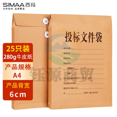 西玛(SIMAA)25只 投标专用A4牛皮纸档案袋 280g加厚款/侧宽6cm 6629