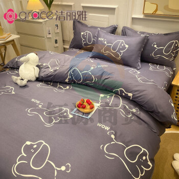 洁丽雅(grace)床上四件套被套床单被子四季通用单人宿舍床三四件套网红款 欢乐狗-蓝 2.0米床【1床单+1被套+2枕套】cyg-230731133323