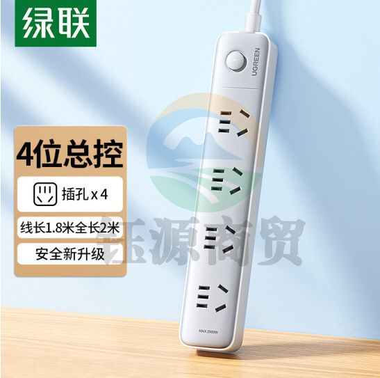 绿联15077 新国标4位总控插座 插线板 接线板 线长1.8米