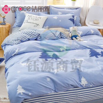 洁丽雅(grace)床上四件套被套床单被子四季通用单人宿舍床三四件套网红款 吉祥鹿-兰 2.0米床【1床单+1被套+2枕套】