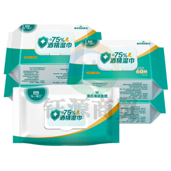 海氏海诺乐一享三 75%酒精湿巾消毒棉片 15*18cm大号 60抽*5包