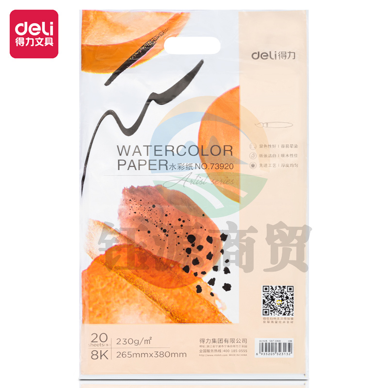 得力73920_8K水彩本230g美术绘画纸20张/包 (白色)(本)