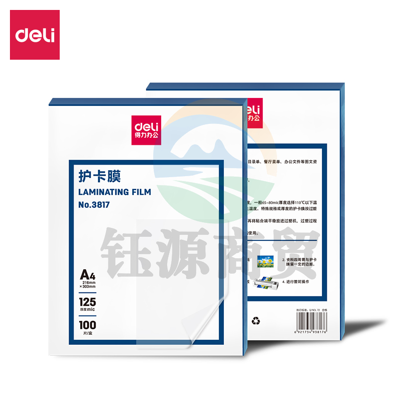 得力3817护卡膜(透明)216*303mm/125mic A4 100张/包