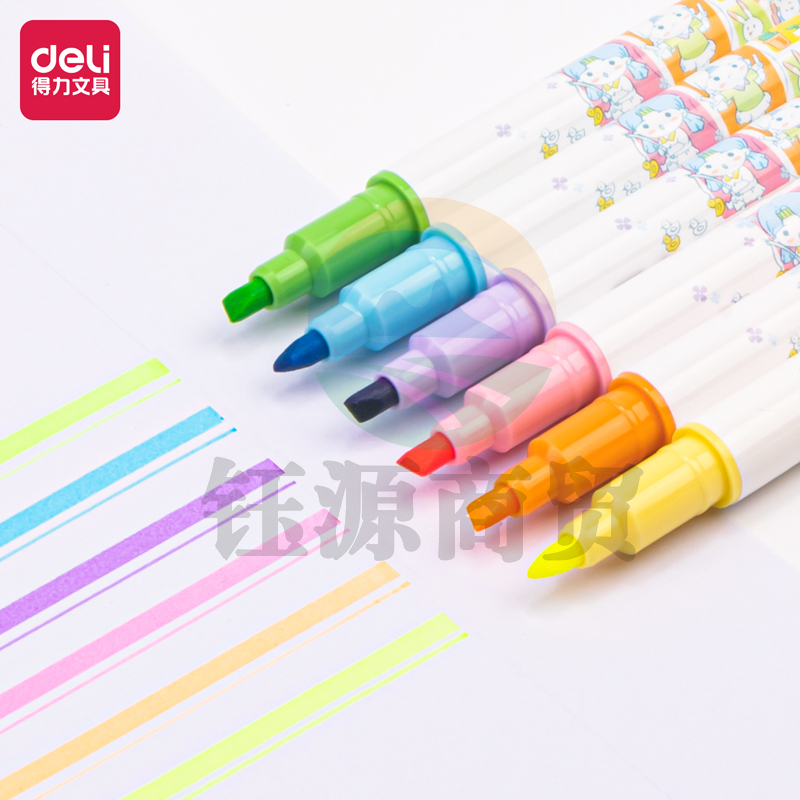 得力S735 娅米系列荧光笔(荧光色系)(混)(6支/袋)