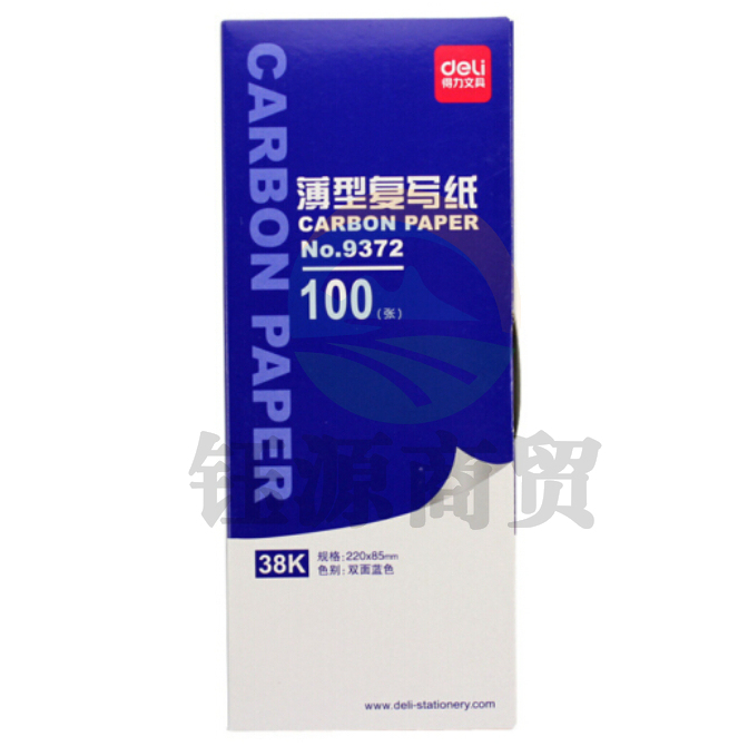 得力 9372 薄型复写纸 蓝靛纸 (蓝) 8.5*22cm 38K(100张/盒)