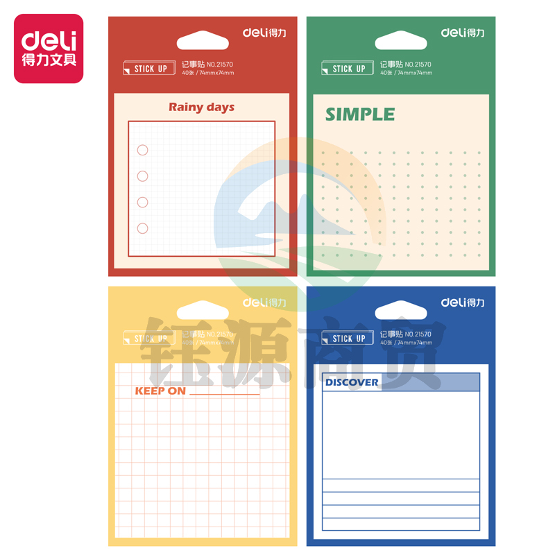 得力21570-4 彩色抽取式记事贴(混色)(4本/袋)