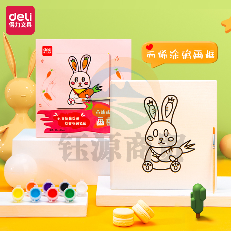 得力73904-2_丙烯涂鸦画框(兔子)(混)(套)幼儿绘画涂色玩具 手工DIY自制画框 绘画套装