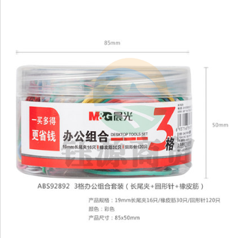 晨光(M&G)三格办公组合套装 ASC92892 (回形针 长尾夹 橡皮筋) 一箱144盒装