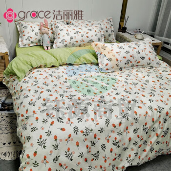 洁丽雅(grace)床上四件套被套床单被子四季通用单人宿舍床三四件套网红款 恋爱味道 1.8米床【1床单+1被套+2枕套】