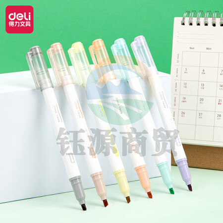 得力(deli)SK137软头柔彩荧光笔彩色醒目标记笔 手帐可用水性记号笔薄雾色系 6支/袋装
