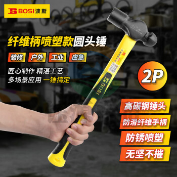 波斯(BOSI)纤维柄喷塑圆头锤防滑锤子榔头铁锤钢锤 BS351002(2P)