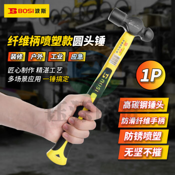 波斯(BOSI)纤维柄喷塑圆头锤防滑锤子榔头铁锤钢锤 BS351001(1P)