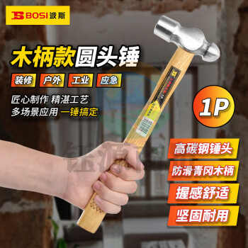 波斯(BOSI)木柄圆头锤防滑锤子榔头铁锤钢锤 BS350901(1P)